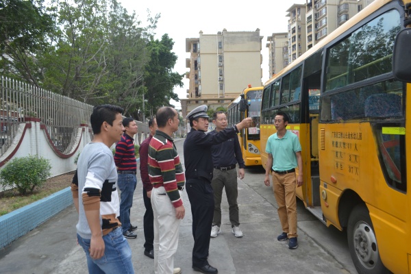 為進(jìn)一步強(qiáng)化校車安全管理,切實(shí)減少和杜絕校車道路交通事故發(fā)生,努力為在校師生出行創(chuàng)造一個(gè)安全、有序、暢通的交通環(huán)境。中山市龍泉學(xué)校于2月21日下午迎接了五桂山交警大隊(duì)、五桂山教指中心檢查組一行對(duì)校車安全檢查,黃飛躍校長(zhǎng)、德育處主任鄭國(guó)輝、后勤主任李志雄等行政陪同。