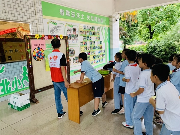 為充分發(fā)揮學(xué)校教育在垃圾分類推廣活動中的重要作用,使廣大學(xué)生認(rèn)清垃圾分類的重要性,進(jìn)一步增強垃圾分類、愛護(hù)環(huán)境意識,共同保護(hù)地球,進(jìn)一步培養(yǎng)青少年環(huán)保意識,引導(dǎo)學(xué)生養(yǎng)成良好行為習(xí)慣,北區(qū)小學(xué)聯(lián)合北區(qū)社區(qū)開展“垃圾分類進(jìn)校園,愛護(hù)環(huán)境齊參與”垃圾分類攤點小游戲活動。