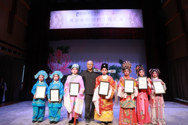 中山市小欖鎮(zhèn)績(jī)西小學(xué)八位師生為觀眾展示了《牡丹亭之游園》、《小送子》兩個(gè)經(jīng)典劇目,學(xué)校10名家長(zhǎng)來(lái)到現(xiàn)場(chǎng)觀看了演出,給粵劇童星們鼓勵(lì)打氣!廣東舞蹈戲劇職業(yè)學(xué)院粵港澳粵劇教育研究中心主任鄧志駒老師更為他們頒發(fā)了證書。