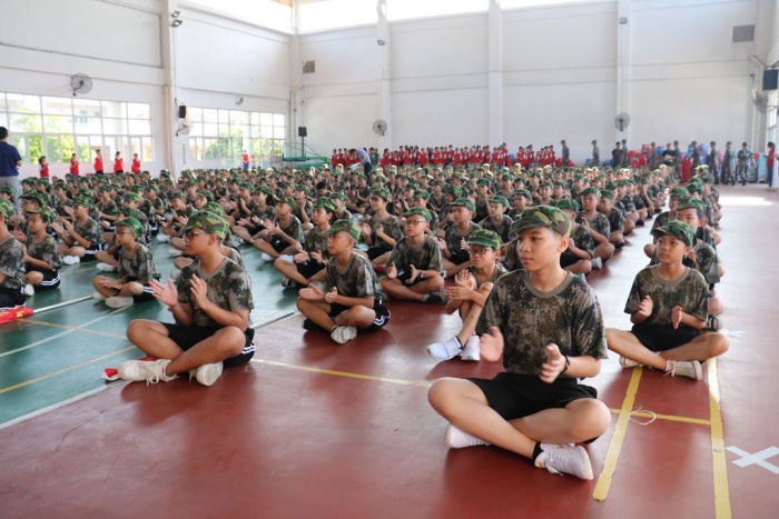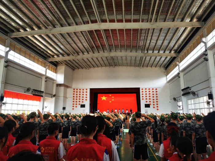 陳校長對同學(xué)們提出了幾點希望:1、安全第一。2、要有吃苦精神,要有戰(zhàn)勝困難的信心,以飽滿的精神和樂觀的態(tài)度參加訓(xùn)練,不嬌氣,不怕苦,不怕累,戰(zhàn)高溫,斗酷暑,流汗不流淚,再累不掉隊,嚴(yán)格訓(xùn)練,力爭取得優(yōu)異的成績?! ?、要發(fā)揚集體主義和愛國主義精神。4、要敬畏紀(jì)律,嚴(yán)守規(guī)矩,認(rèn)真上好每一節(jié)訓(xùn)練課,要向教官學(xué)習(xí)軍人的高尚品質(zhì)、雷厲風(fēng)行的作風(fēng)、嚴(yán)明的組織紀(jì)律。希望同學(xué)們以最認(rèn)真的學(xué)習(xí)態(tài)度、最飽滿的精神面貌,磨練出自己最堅韌的意志品質(zhì),最優(yōu)秀的行為習(xí)慣,為三年的初中生活打下堅實的基礎(chǔ)。