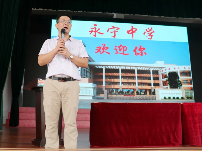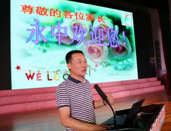 八月底,中山市永寧中學(xué)美麗的校園內(nèi)又迎來了493名青澀又充滿朝氣的面孔。在經(jīng)過三天的國防教育和兩天的學(xué)前培訓(xùn)后,為了更好地讓新生家長了解學(xué)校情況及初中生活,學(xué)校特地召開了初一新生家長會。8月27日晚8點整,全體初一新生家長在經(jīng)過校門口測溫和查驗粵康碼后,整齊地聚集在學(xué)校體育館。會議由學(xué)校德育處戴放良主任主持。會議首先對學(xué)校的行政班子及初一年級的班主任團隊進(jìn)行了介紹,接著由學(xué)校黨支部書記、校長陳清茂同志介紹學(xué)校的歷史、發(fā)展歷程、辦學(xué)理念及取得的榮譽。