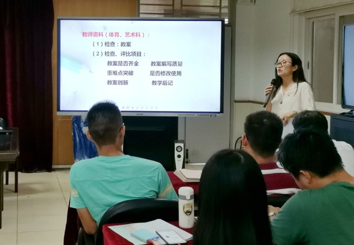 龍主任從四個(gè)方面強(qiáng)調(diào)了本學(xué)期教學(xué)常規(guī)管理要求和教研紀(jì)律。一是加強(qiáng)教師隊(duì)伍建設(shè),主要從骨干教師引領(lǐng)、科組長備課組長管理、青年教師培養(yǎng)、新教師到崗培訓(xùn)等方面進(jìn)行。二是加強(qiáng)課堂教學(xué)研究。明確各科組、各備課組以“分層教學(xué)”為教研主題,要求各備課組要大力改進(jìn)學(xué)案,在學(xué)案的設(shè)計(jì)、課堂教學(xué)環(huán)節(jié)中明確體現(xiàn)分層,初一小步子嘗試走班教學(xué),初二初三開展AB班輔導(dǎo)教學(xué),由固定教師有計(jì)劃有策略進(jìn)行培優(yōu)。