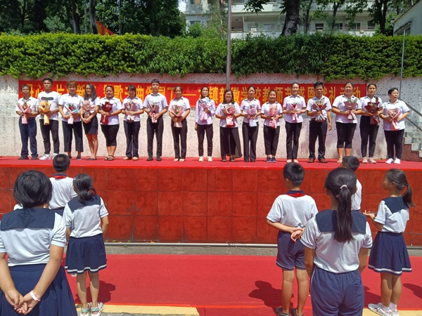 活動(dòng)開(kāi)始,主持人歐陽(yáng)琬璇同學(xué)向全體教師致以崇高的敬意,并代表全體同學(xué)向全校老師致以節(jié)日的祝福。接著,表演隊(duì)的同學(xué)們?yōu)槔蠋煫I(xiàn)上了手語(yǔ)操表演,一首《聽(tīng)我說(shuō)謝謝你》帶動(dòng)了全體同學(xué),現(xiàn)場(chǎng)歌聲歡快的旋律伴隨著手語(yǔ)操動(dòng)作,表達(dá)著對(duì)老師的濃濃謝意。手語(yǔ)操表演結(jié)束后,進(jìn)行的是獻(xiàn)花環(huán)節(jié),老師們依次上臺(tái)接受少先隊(duì)員代表的真誠(chéng)獻(xiàn)禮,一束束鮮花綻放代表著教師的默默耕耘、辛勤付出,一張張笑臉滿懷著對(duì)老師的敬意,少先隊(duì)員代表們將花獻(xiàn)給老師,向老師們表達(dá)了祝福。最后,在場(chǎng)的全體同學(xué)共同齊聲說(shuō)“老師,祝您節(jié)日快樂(lè)”,向老師送去祝福。活動(dòng)在一片歡快的氛圍中結(jié)束。