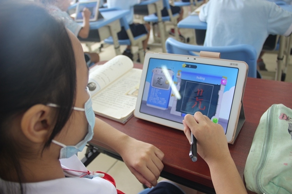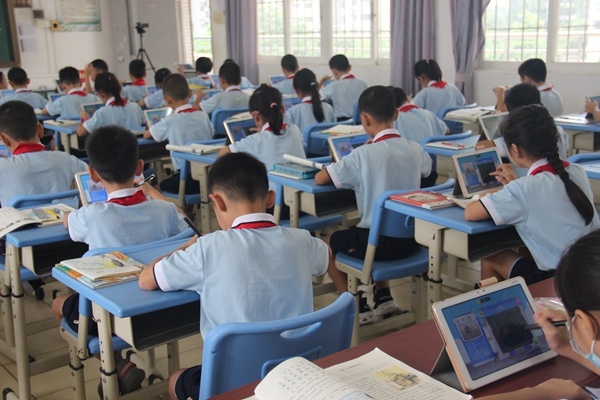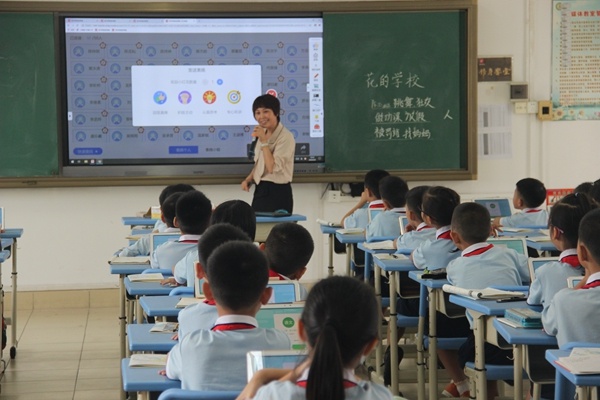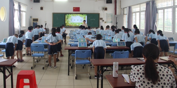 接著,梁雪芬副主任為大家展示一節(jié)嘗試用平板輔助教學(xué)的智慧課堂,本節(jié)課梁主任充分展示了其對(duì)平板電腦教學(xué)的熟練運(yùn)用,以平板、PPT課件、以及學(xué)生熟悉的圖片為教學(xué)媒介,開(kāi)展各種生動(dòng)有趣的教學(xué)活動(dòng),同學(xué)們爭(zhēng)先恐后地?fù)尨饐?wèn)題,極大地激發(fā)了學(xué)生的學(xué)習(xí)熱情。