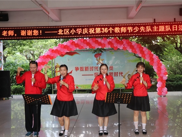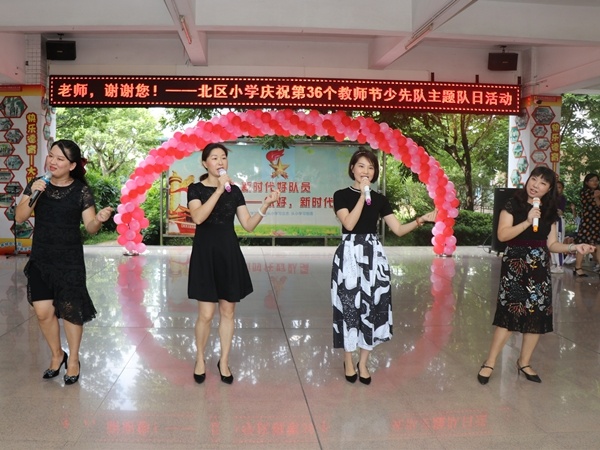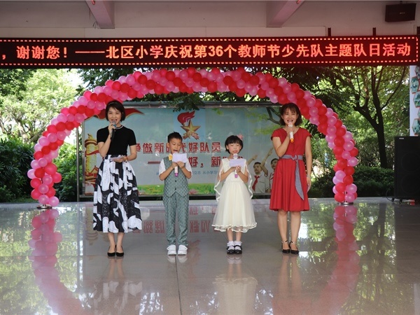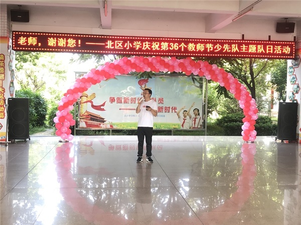 有人說(shuō):您是辛勤的園丁,用知識(shí)做露珠,培育祖國(guó)的花朵;有人說(shuō),您是無(wú)私的蠟燭,傾盡畢生精力,燃燒自己照亮別人。可您卻說(shuō):桃李滿天下,是您一生的夙愿;三尺講臺(tái)上的英姿颯爽,是您永遠(yuǎn)的眷戀。您,就是這樣一個(gè)可愛(ài)可敬、和藹可親的人,像太陽(yáng),溫暖著學(xué)生的心;像月亮,照亮漆黑的夜空;像星星,指引夜行的身影;像雨露,滋潤(rùn)著世界萬(wàn)物!9月10日,迎來(lái)了第36個(gè)教師節(jié),北區(qū)小學(xué)慶祝第36個(gè)教師節(jié)少先隊(duì)主題隊(duì)日活動(dòng)在教學(xué)樓一樓大堂拉開(kāi)帷幕,一出出精彩好戲輪番上演!