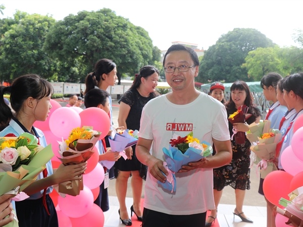 請(qǐng)您來(lái)感受!幸福在北小傳遞!伴隨著老師們的歌聲,主持人邀請(qǐng)全體老師走向會(huì)場(chǎng)的紅毯前,今天,北小的老師都是最耀眼的那顆星,那一顆星,在黑夜照亮孩子們的心!今天的紅毯,屬于北小的全體老師,在學(xué)校行政班子的帶領(lǐng)下,老師們從紅毯的末端徐徐地走向舞臺(tái),接受簇?fù)淼暮⒆觽兯蜕系孽r花和祝福。此時(shí)此刻,感動(dòng)、幸福圍繞著老師們。