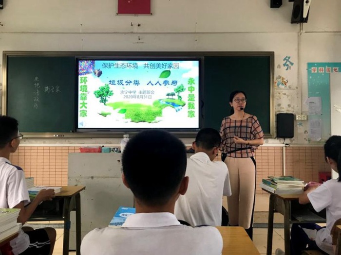 推進垃圾分類工作是創(chuàng)建文明城市重要的一環(huán),美化居住環(huán)境,減少污染,變廢為寶。為努力推動學校的垃圾分類工作,樹立綠色低碳、環(huán)保的生活理念,中山市永寧中學師生都非常重視,并且一直在積極推進垃圾分類工作,8月31日下午師生回校的第一天,各班級專門召開“垃圾分類我先行,中山城市更文明”教育主題班會,讓垃圾分類真正落實在日常生活中去。