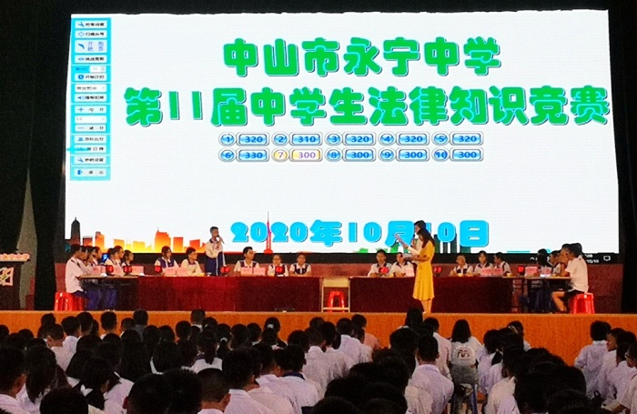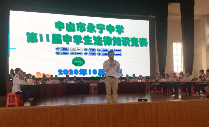 10月10日下午,為了更好落實(shí)《關(guān)于開(kāi)展中山市第11屆中學(xué)生法律知識(shí)競(jìng)賽活動(dòng)的通知》的要求,貫徹“七五”普法規(guī)劃,落實(shí)立德樹(shù)人的根本任務(wù),繼續(xù)大力推進(jìn)“法治進(jìn)校園” 活動(dòng),豐富學(xué)生的法律知識(shí),增強(qiáng)學(xué)生法制觀念,永寧中學(xué)在學(xué)校體育館舉辦第11屆中學(xué)生法律知識(shí)競(jìng)賽活動(dòng)。競(jìng)賽活動(dòng)由陳煥然、郭子民老師主持,初二年級(jí)全體師生觀摩了競(jìng)賽全過(guò)程。