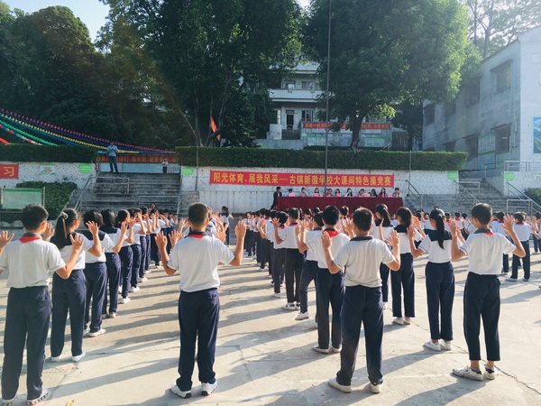 古鎮(zhèn)新徽學(xué)校根據(jù)大課間特色,結(jié)合學(xué)校實際,開展自創(chuàng)的校園《大夢想家》特色操,并在全校范圍內(nèi)推廣練習(xí)。利用體育課、大課間活動等時間,廣泛開展訓(xùn)練。特色操內(nèi)容采用了《大夢想家》音樂,將運動活力與音樂舞蹈結(jié)合起來,使學(xué)生在學(xué)習(xí)特色操的同時,也能得到靈活的體育鍛煉,更好展現(xiàn)學(xué)校的藝術(shù)特色,在每天的大課間活動中,深受師生的喜愛,也更好展現(xiàn)了學(xué)校的大課間特色。經(jīng)過兩個多小時的比賽,各班都展示了出色的做操水平,學(xué)生們出色的表現(xiàn),為大課間陽光體育增添了風(fēng)采。