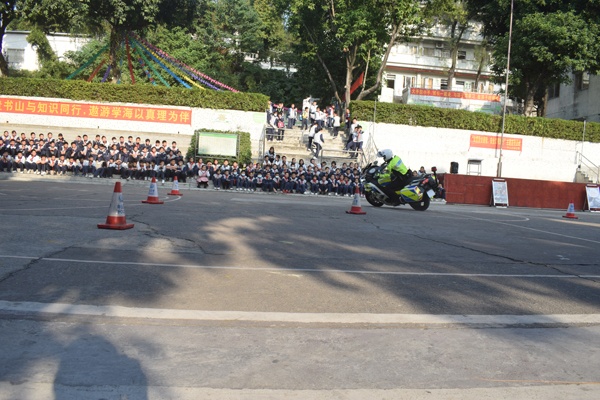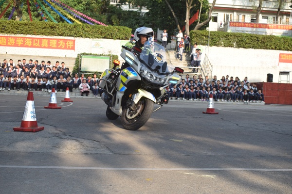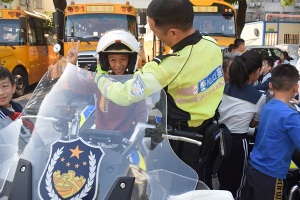活動最后,進行的是“鐵騎展示和互動”環(huán)節(jié),交警鐵騎隊員們?yōu)橥瑢W(xué)們表演了鐵騎騎行、繞樁等風(fēng)采展示,鐵騎隊英姿颯爽,一展風(fēng)采,讓現(xiàn)場的同學(xué)們拍手叫好、掌聲不斷。表演完畢后,鐵騎隊員們與同學(xué)們進行了親切的互動,不少同學(xué)在鐵騎隊員的幫助下,穿戴上鐵騎日常裝備,體驗鐵騎的工作,感受鐵騎的使命,還對鐵騎隊員提出了許許多多的心中的小疑問,鐵騎隊員都進行了耐心回答并與同學(xué)們合影留念。