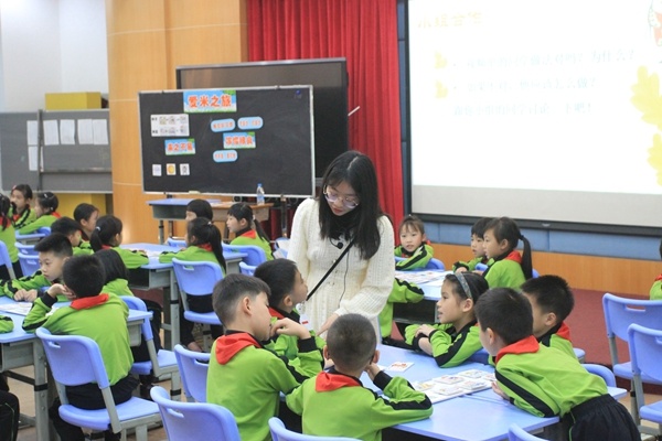 隨后,鐘勇老師一行來到報告廳,觀摩了一節(jié)由升平小學青年教師黃思婕老師執(zhí)教的主題班會課。在孫川老師工作室團隊的帶領(lǐng)和指導下,黃思婕老師帶著二(3)班的孩子共同呈現(xiàn)了一堂以“節(jié)約糧食”為主題的班會課。精美的板書、層層遞進的教學環(huán)節(jié)設(shè)計、精心設(shè)計的互動環(huán)節(jié),黃老師帶領(lǐng)孩子們一起認識糧食的來之不易,以及如何將珍惜糧食落到實處。整節(jié)課氣氛活躍、主題鮮明,得到了現(xiàn)場觀摩的老師們一致好評。這不僅體現(xiàn)出升平小學青年教師的積極進取,更彰顯了廣東省名班主任孫川工作室團隊積極的輻射帶動作用。
