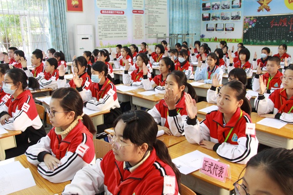 隨后,校團(tuán)委麥穎添委員宣讀了《中國(guó)少年先鋒隊(duì)中山市小欖鎮(zhèn)菊城中學(xué)2020年代表大會(huì)選舉辦法(草案)》、少先隊(duì)中山市小欖鎮(zhèn)菊城中學(xué)第十七屆大隊(duì)委員候選人名單,大會(huì)審議通過(guò)了候選名單;審議通過(guò)《少先隊(duì)中山市小欖鎮(zhèn)菊城中學(xué)第一屆工作委員會(huì)委員候選人補(bǔ)選名單》,補(bǔ)選產(chǎn)生了中國(guó)少年先鋒隊(duì)中山市小欖鎮(zhèn)菊城中學(xué)第一屆工作委員會(huì)部分委員;審議并通過(guò)學(xué)校少先隊(duì)的重要工作和重點(diǎn)活動(dòng)。各項(xiàng)議程在校團(tuán)委委員盧發(fā)老師的主持下有序進(jìn)行并圓滿地完成。