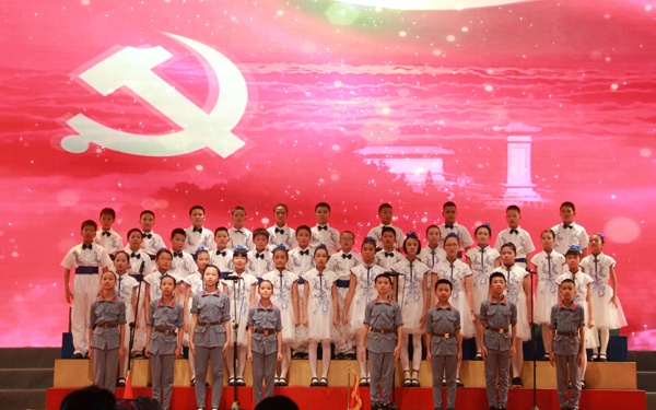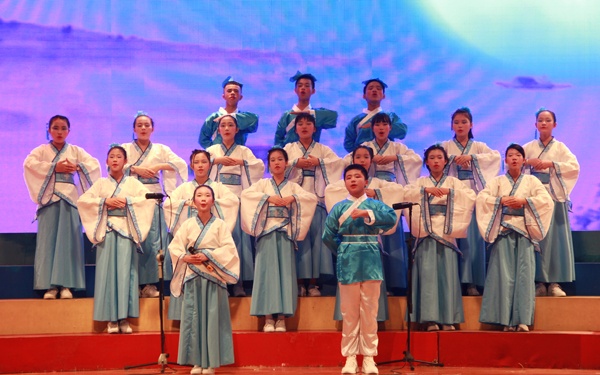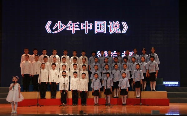 三年級(jí)的同學(xué)朗誦了《少年中國說》《蘭亭集序》《木蘭辭》等篇目。在朗誦中,參賽班級(jí)采用了對(duì)誦、群誦等不同的形式,字正腔圓,整齊明快,展現(xiàn)出了較好的精神面貌。