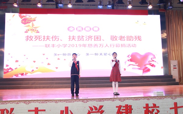 2019年2月20日下午,聯(lián)豐小學全校一千多名隊員齊聚體育館,舉行以“救死扶傷、扶貧濟困、敬老助殘”為主題的2019年慈善萬人行愛心捐款儀式。