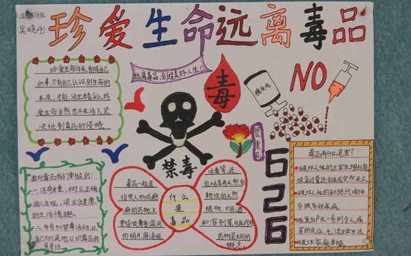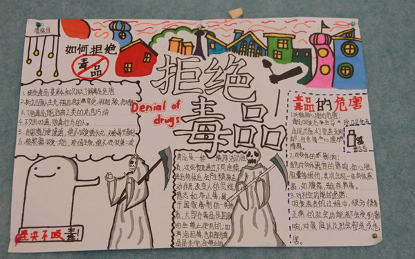 本次開展的禁毒手抄報(bào)比賽,對(duì)同學(xué)們進(jìn)行禁毒知識(shí)宣教活動(dòng),提高學(xué)生禁毒意識(shí)。積極營(yíng)造了一個(gè)文明、凈化的校園環(huán)境。