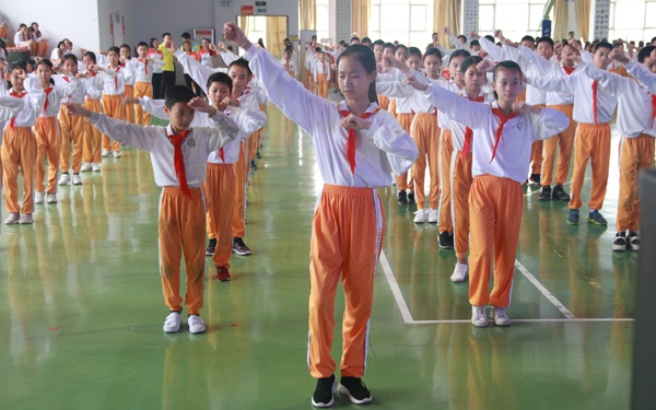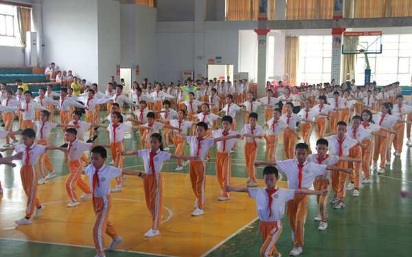 本次廣播操比賽,校領導和全體隊員高度重視,在為期半個月時間的辛苦訓練中,班主任跟班訓練,體育老師耐心指導動作,隊員不惜犧牲個人休息時間加緊練習。每天的訓練提高了學生的身體素質,培養(yǎng)了他們的集體榮譽感,增進了同學之間的友誼,充分展示了當代學生對體育運動的熱情和健康活力,彰顯了“陽光體育運動”的精神。比賽結束后,德育科霍主任針對本次比賽做了簡短總結,提倡同學們“快樂學習,健康成長”。