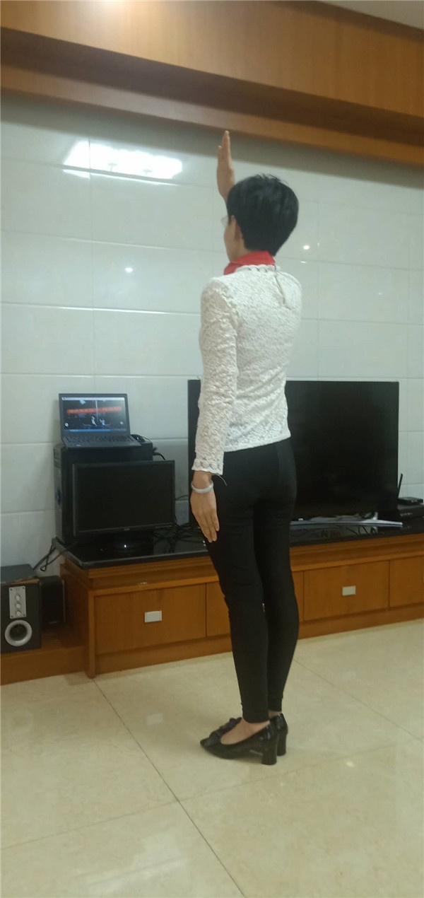 活動第二項內(nèi)容是全體學(xué)生獻唱中國少年先鋒隊隊歌——《我們是共產(chǎn)主義接班人》,隊歌在唱響!伴隨著嘹亮的歌聲,仿佛看到了一只只雛鷹將展翅飛翔,相信隊員們將會用自己的熱情和智慧為隊旗增添光彩!