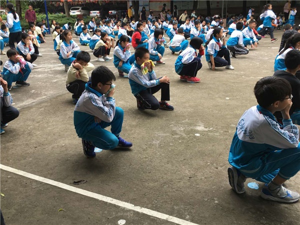 隨著警報(bào)聲的響起,全體同學(xué)在行政和老師們的引導(dǎo)下紛紛從課室中有序的按照逃生路線向安全地方疏散,同學(xué)們?cè)诎l(fā)生火情逃離過(guò)程中都做好了充分地防護(hù)措施,彎著腰,用濕毛巾捂住口鼻躬身前行,并嚴(yán)格聽(tīng)從老師的指揮,幾分鐘后全體參與演練的師生安全撤離火災(zāi)現(xiàn)場(chǎng)。全體師生撤離到安全的地方后,各班立刻清點(diǎn)人數(shù),有序地向活動(dòng)指揮員報(bào)告人數(shù),整個(gè)演練現(xiàn)場(chǎng)井然有序。