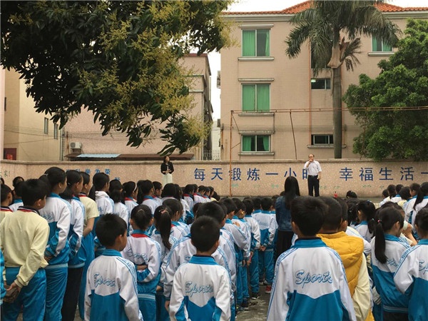 演練結(jié)束后,有學(xué)校談炳泉校長(zhǎng)即場(chǎng)對(duì)全體師生進(jìn)行“火災(zāi)逃生的知識(shí)和技能培訓(xùn)”。談校長(zhǎng)從“野外發(fā)生火情”“室內(nèi)發(fā)生火情”“校內(nèi)發(fā)生火情”三方面向?qū)W生詳細(xì)講解了如何應(yīng)對(duì)和逃生。隨后還向全體師生展示了如何使用滅火器來(lái)滅火的技能。學(xué)生聽(tīng)得認(rèn)真,在談校長(zhǎng)邊講解邊示范的講解中,進(jìn)一步提升師生們遇火情時(shí)的應(yīng)對(duì)技能,增強(qiáng)了師生們的安全意識(shí)。