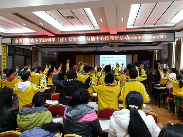 在永善縣支教的日子里,黃老師每天都是6點就起床了,然后在宿舍步行上坡20分鐘到達永善民族小學。黃老師十分重視課堂。因為廣東與云南教材的不一樣,所以黃老師把當?shù)氐娜搅昙壍慕滩耐ㄗx了一遍。黃老師認真?zhèn)湔n,細心研究,她的課堂十分靈動有趣,得到了永善民族小學的教師們和學生們的一致好評。黃老師在支教團隊中還擔任組長,身負重任的黃老師白天給學生上課,做專題講座,給民族小學老師培訓,晚上多次召集組員召開支教小組會,上下溝通。黃老師和支教團隊老師們積極融入到當?shù)乩蠋熀蛯W生中,參加教研會,學課間操,晚修前跳彝族踢踏舞。周六黃老師帶領支教團隊參加民族小學的級組活動,文化摸底。他們經(jīng)常天還沒亮就起床,天黑才回到住所。為了改善永善民族小學孩子的閱讀情況,黃老師積極與升平小學校長麥嫦紅校長商量發(fā)起“讓永善民族小學學生擁有自己的課外書”的活動。在麥嫦紅校長的支持下,少先隊部發(fā)動升平小學的師生們開展了為永善民族小學捐書的活動。黃老師和支教團隊的奉獻精神和支教義舉深深感動了永善人民,他們就是正能量的代表。