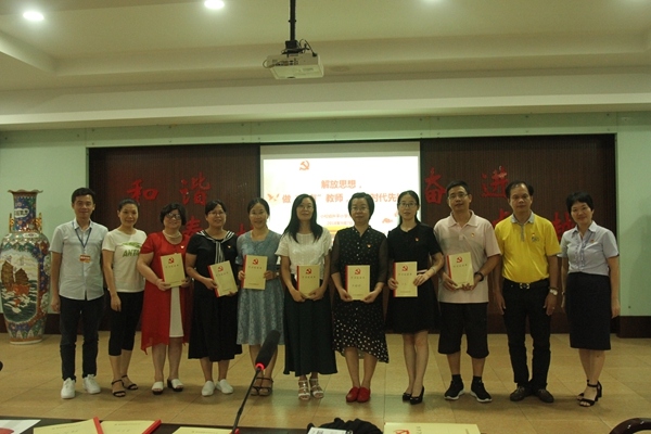 接著,黨支部書記麥校長向全體黨員發(fā)出倡議——“解放思想,做‘四有教師’,爭當(dāng)時代先鋒” 。旨在進一步提高基層黨組織的凝聚力和戰(zhàn)斗力,激發(fā)黨員教師先鋒角色意識,增強黨員的榮譽感、責(zé)任感和使命感,保持黨員隊伍的先進性和純潔性。麥書記強調(diào):一是要主動學(xué)習(xí)“強意識”。讓每一位黨員主動亮出身份,不斷增強政治意識,強化黨員意識,提升自我教育、自我管理、自我覺醒的自覺性,讓自己在各個方面都成為集體中的先鋒形象。二是要解放思想“強信念”。始終牢記入黨誓詞,堅定理想信念,不忘初心。尤其要有攻堅克難的決心,敢于直面問題,切實剖析自身存在的問題,有不解決問題不罷休的決心。三是要勇于反思“當(dāng)先鋒”。要求黨員教師要立足崗位講貢獻,在學(xué)校各項教育教學(xué)工作中勇當(dāng)先鋒,在關(guān)鍵時刻站得出來、沖得上去;在難題面前敢闖敢試、敢為人先;在矛盾面前敢抓敢管、敢于碰硬;在風(fēng)險面前敢作敢為、敢擔(dān)責(zé)任。四是關(guān)于跨越“促創(chuàng)新”廣大黨員教師要發(fā)揮自己的聰明才智,要具備“到教育教學(xué)前線展身手,到群眾前面挑重擔(dān),到急、難、險、重的崗位上錘煉黨性”勇氣、直面問題的決心、迎接挑戰(zhàn)的氣概、直面問題,帶頭創(chuàng)新,做創(chuàng)新的骨干。