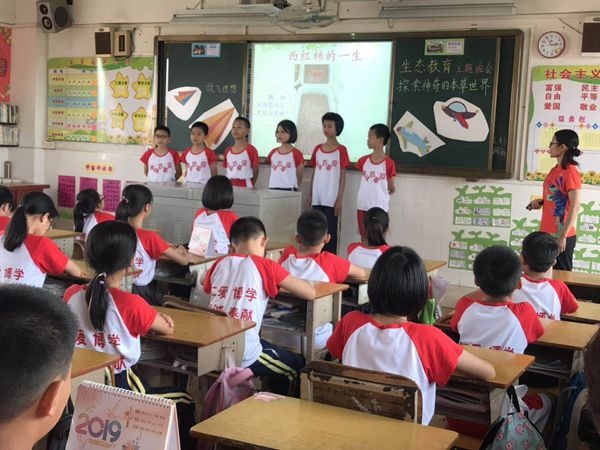 在種植實踐篇里,學(xué)生們以小組的形式,分享著自己在百草園的實踐故事,既展現(xiàn)了學(xué)生寫作的能力,又鍛煉了學(xué)生語言表達能力。在科普探究篇里,學(xué)生們分享了自己通過探究性學(xué)習(xí),搜集植物資料,探究植物的藥用價值和食用價值,制作植物名片的經(jīng)歷。學(xué)生們的表達條理性強,贏得了家長們的陣陣掌聲。在詩情畫意篇里,學(xué)生們分小組誦讀自主創(chuàng)編的兒童詩《我想》和《可愛的本草》。這些詩歌的創(chuàng)作素材是學(xué)生們在百草園種植實踐基地里細心觀察,激發(fā)了探索學(xué)習(xí)的興趣和豐富了想象力的結(jié)晶。在生命感悟篇里,學(xué)生們談了自己播種、觀察、培育西紅柿成長的一個完整生命旅程的感悟。當(dāng)學(xué)生們結(jié)合自己的實踐,分享到要珍惜時間好好奮斗,感謝猶如西紅柿一樣的母親把自己的精力用心地培育自己……一些聽課的家長都感動得流下了眼淚。學(xué)生們在學(xué)習(xí)《夢想的力量》時,寫下了自己的理想。在放飛夢想時,學(xué)生自信大方地跟家長們、來賓們分享自己的理想。通過誦讀百草公約,學(xué)生們希望自己成為一名擁有仁愛之心,修煉崇高德行,學(xué)會博學(xué)進取,做事精益求精,為人誠實守信,樂于奉獻社會的陽光學(xué)子。