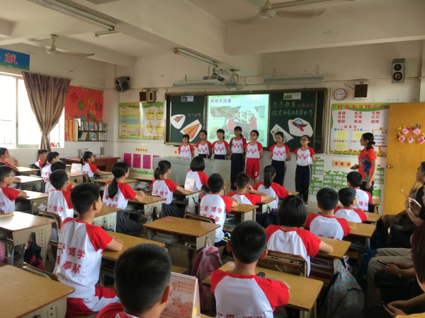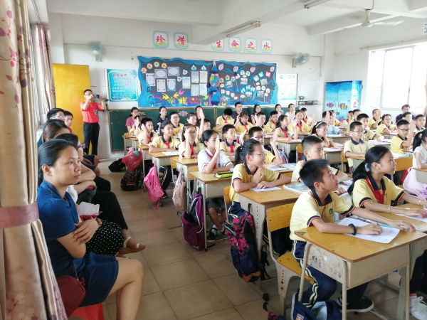 參觀完風雨長廊的書畫作品后,大部分的家長來賓們挪步到孩子們的教室里。他們走進了教室,與孩子們一起上課。自2014年起,學校開展了改善課堂生態(tài)流程的教學改革研究,以學生為中心、以學為中心的生態(tài)課堂很好地促進孩子發(fā)展,而開放日所展示的課堂便也以“學為中心”為基點而展開,每個教室都在向家長、來賓展示生態(tài)課堂的魅力,如五(1)班梁燕霞老師執(zhí)教的《探索神奇的本草世界》把孩子們帶進了本草的世界,一(3)班謝麗萍教師執(zhí)教的英語課堂《Unit10》點燃了孩子們的學習興趣,廖成濤老師巧借呼啦圈讓六(1)班的大小孩感受了籃球運球的趣味......這一天孩子們課堂表現(xiàn)一如既往地棒,家長來賓們對盛豐小學教師們的教學水平表示十分滿意,紛紛為教導有方的教師們點贊叫好。