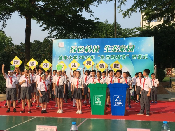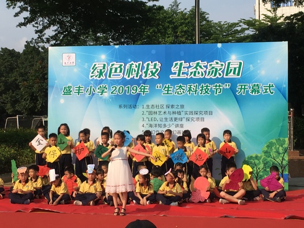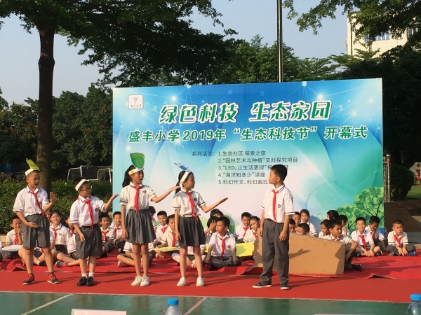 最后,迎來了開放日最后一個活動:生態(tài)科技節(jié)開幕式。開幕式伊始,由盛豐小學黎康華校長宣讀了活動的目的,接著,各班孩子們準備就位,為了喚起大家愛護地球、保護家園的意識,以“綠色科技,生態(tài)家園”為主題,各班都通過科普劇嶄新的形式宣傳“用科技改變生態(tài)、用科技服務生態(tài)”理念。此次科技節(jié)科普劇還分為六個篇章,他們分別是智能數(shù)據(jù)篇,塑料篇,循環(huán)利用篇、動能篇、綠色材料篇、能源篇。孩子們所展示的科普劇,沒有絢麗奪目的道具,但卻有著純手工制作的環(huán)保道具,從道具上已經(jīng)響應著生態(tài)主題,他們的表演的思路也十分清晰,劇目的內(nèi)涵通過孩子們精彩出色的表演體現(xiàn)得淋漓盡致,如三(2)班《風能的神奇力量》,簡單有趣的故事情節(jié)一下子把在座觀眾拉進了劇目里,幽默詼諧的語言引發(fā)著全場陣陣笑聲;五(1)班《可食用的一次性餐具》一下子讓觀眾們秒懂了劇情,留給觀眾來賓們對于環(huán)保綠色材料的深刻印象。