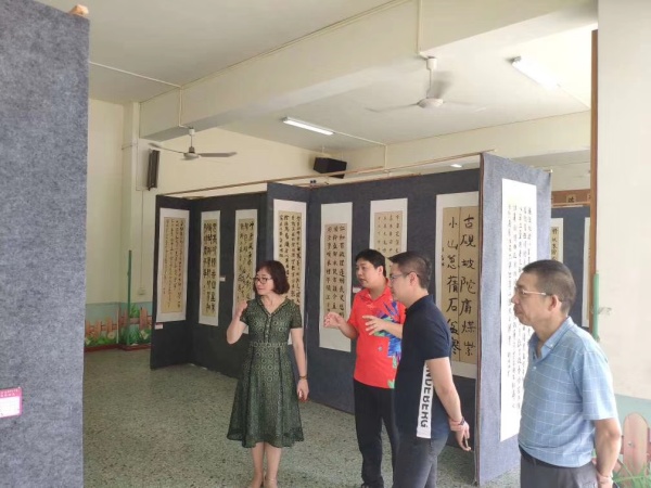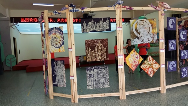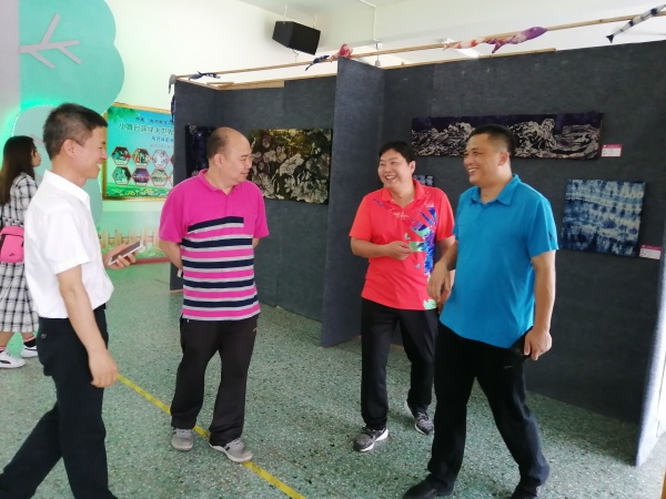 本屆社會開放日活動內(nèi)容十分豐富。學校的風雨長廊呈現(xiàn)了師生書書法120多幅、蠟染扎染作品80多幅、裝飾畫50多幅,絡繹不絕的來賓長駐展廳,欣賞之余還拿出手機來拍攝。小欖鎮(zhèn)是全國書法之鄉(xiāng),在傳承書法藝術(shù)工作上一直不遺余力,幾年以來,學校教師以及書法社團在楊彩均老師引領下潛心練習,形成濃厚的氛圍,作品的形式也逐漸多樣起來,小欖鎮(zhèn)書法中心組組長、全國書法家協(xié)會會員李志平盛贊學校師生書法水平進步神速、整體提升得很快;而小欖鎮(zhèn)黨委委員張曉陽女士則在盛贊師生書法水平高的同時勉勵學校要繼續(xù)加強書法這一傳統(tǒng)文化的的傳承。學校蠟染扎染社團展出的作品形式多樣,藝術(shù)感很強,這個創(chuàng)團還不夠一年的社團在廖月萍老師帶領下展現(xiàn)了旺盛的創(chuàng)作熱情,同時,為小學開展蠟染扎染藝術(shù)邁出了十分有益的探索步伐。歐紫琪老師帶領低年級孩子的裝飾畫也呈現(xiàn)出兒童獨有的藝術(shù)視角,構(gòu)圖宏觀而又不失精細,也受到贊賞。
