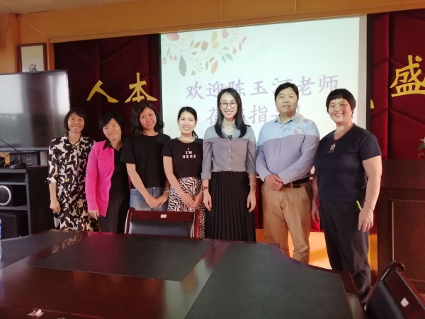 接著,陳玉河老師根據董老師的教學設計及結合她上的這節(jié)課進行深入的點評。她肯定了董老師扎實的基本功,并就故事教學的主題、導入、設問等方面提出了合理、科學、中肯的建議。同時對繪本故事教學中要注意的問題作了闡述。她說:作為一個執(zhí)教者,往往會進入一個誤區(qū):老師把內容教完了,而不是學生把知識學會了。另外,她提到:設計問題時要有留白的地方,才會讓學生有更大的思考的空間。同時所設計的問題要有邏輯性。此外,她強調教學設計的每一個環(huán)節(jié)都應該有設計意圖,而且目標要明確。最后,該校的老師們向陳老師提出了在教學過程中的困惑,陳老師都一一耐心為老師們指點迷津。