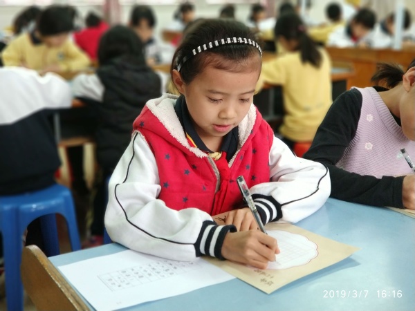 2月28日下午,盛豐小學(xué)20個(gè)班級進(jìn)行了初賽,每班競選出5名同學(xué)參加3月7日的決賽。學(xué)生對此次比賽表現(xiàn)出極大的熱情,比賽以課內(nèi)古詩為書寫主題。比賽現(xiàn)場,參賽者們個(gè)個(gè)滿懷激情,用心書寫每一個(gè)筆畫、每一個(gè)漢字。同學(xué)們握筆正確,坐姿端正,表現(xiàn)出良好的書寫習(xí)慣,所寫作品筆畫流暢,橫平豎直,結(jié)構(gòu)勻稱,整體美觀,在短短的時(shí)間內(nèi)現(xiàn)場完成自己的作品。