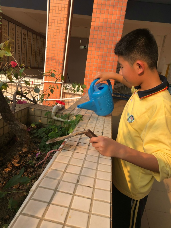經(jīng)過一番植樹節(jié)的生動(dòng)講解后,余金梅主任號(hào)召同學(xué)們用行動(dòng)立刻去踐行對(duì)植樹節(jié)和本次活動(dòng)的意義。不一會(huì)兒,所有班級(jí)有序退場,紛紛拿起植樹工具,同學(xué)們分工合作,行動(dòng)力滿滿的勁頭瞬間遍布校園。有的小身板雖瘦小卻爭拿大鏟子,有的使勁全身力氣幫忙松土,有的則小心翼翼地揣著小樹苗,有的熱切搶著澆水壺生怕小樹苗“口渴” ……今日的太陽尤其猛烈,但同學(xué)們齊心協(xié)力共值一棵樹的那種熱情足以抵擋外部所散發(fā)的光和熱,他們忙忙碌碌的身影隨時(shí)可見,專心致志的模樣陶醉人心,不畏艱辛的精神令人欣慰。