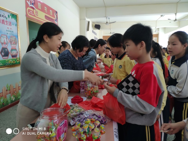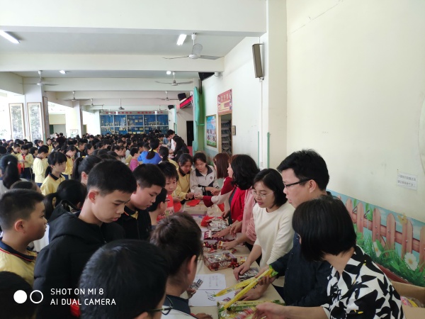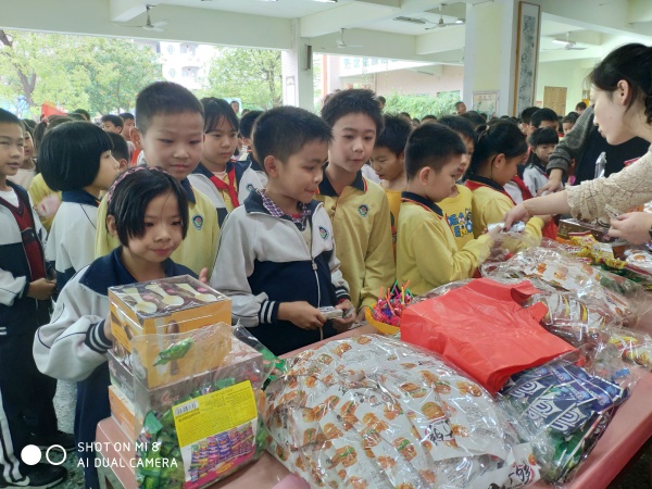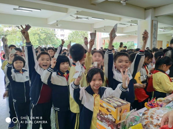 2019年3月1日下午,盛豐小學(xué)在學(xué)校風(fēng)雨體育場(chǎng)開展了“紅領(lǐng)巾假日實(shí)踐活動(dòng)大兌獎(jiǎng)”主題活動(dòng)。學(xué)校提前為同學(xué)們準(zhǔn)備了豐富的禮物:百緣朱古力、棒棒糖。100學(xué)鎊可以兌1支棒棒糖;200學(xué)鎊可以兌1條棒冰+2顆維多莉糖;300學(xué)鎊可以兌1包百緣朱古力+1包薯片。這些禮物都是同學(xué)們喜歡的。兌獎(jiǎng)活動(dòng)以年級(jí)為單位進(jìn)行。