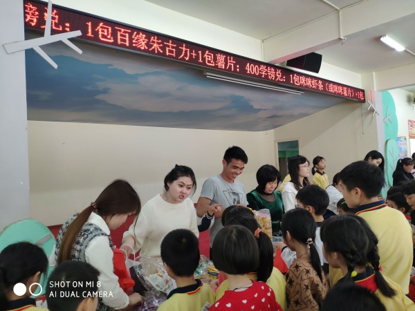 看!上課鈴聲響了之后,各級(jí)的同學(xué),迫不及待地在級(jí)長(zhǎng)老師的指揮下以兩列縱隊(duì)進(jìn)入兌獎(jiǎng)現(xiàn)場(chǎng)。同學(xué)們好像過(guò)節(jié)般興奮!他們手里捏著通過(guò)自己的努力爭(zhēng)取的學(xué)鎊,心里可能在默默的盤算著:可以兌什么禮物呢??jī)栋倬壷旃帕??還是兌棒棒糖?