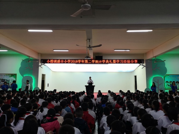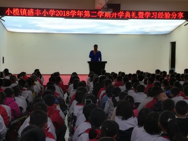 2月18日,盛豐小學(xué)舉行了2018學(xué)年度第二學(xué)期開學(xué)典禮暨學(xué)習(xí)經(jīng)驗分享會。雖然天空下著蒙蒙細雨,但盛豐小學(xué)全體師生仍然帶著熱情澎湃心情集中在風(fēng)雨樓大廳,參加2018學(xué)年第二學(xué)期開學(xué)典禮。全體師生肅立,奏唱國歌。會議在同學(xué)們鏗鏘有力的歌聲中拉開帷幕,五星紅旗冉冉升旗,全體師生面向國旗致敬。接著,分別由五、六年級優(yōu)秀學(xué)生學(xué)生代表徐傲翔、李國濤在會上做學(xué)習(xí)經(jīng)驗分享,他們毫無保留地介紹他們對學(xué)習(xí)上的一些做法與見解,讓其他學(xué)生受益不淺。