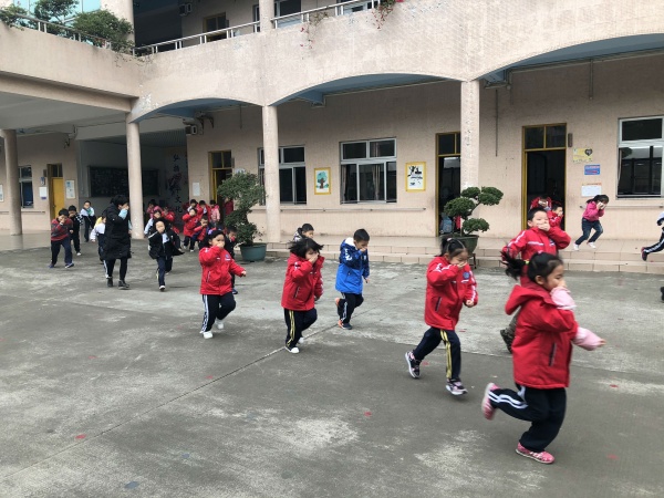 當(dāng)天上午,盛豐小學(xué)校園響起一陣緊急的鈴聲,各班學(xué)生快速向樓下空曠區(qū)域疏散。受益于常規(guī)出操集會(huì)的有序性,今天應(yīng)急疏散秩序井然,路程最遠(yuǎn)的年級(jí)不到兩分鐘的時(shí)間就從四樓撤到運(yùn)動(dòng)場指定的位置。瞧,最快疏散到安全地帶的是首層的一年級(jí)學(xué)生,別看他們年紀(jì)小,參加演練毫不含糊,當(dāng)緊急鈴聲響起時(shí),學(xué)生們在各班正、副班主任的指揮下,用濕毛巾一只手拿毛巾掩住口鼻,彎腰,另一只手前伸探路,一路小步慢跑,快速、有序地離開“濃煙區(qū)”,不到40秒的時(shí)間便撤離到安全地帶。整個(gè)演習(xí)過程緊張、有序,順利地實(shí)現(xiàn)了預(yù)定目標(biāo)?! ?/p>