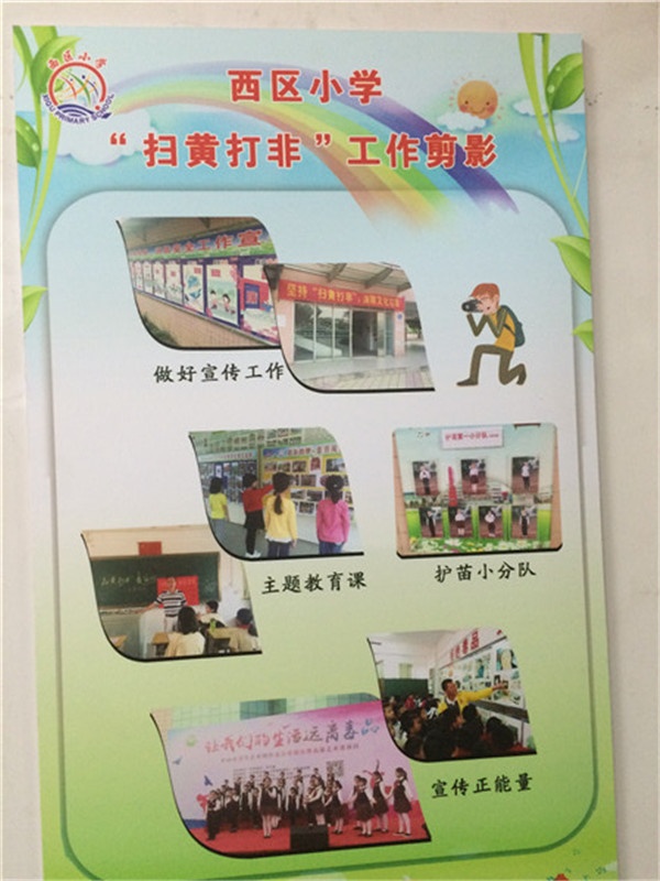 二是開展主題活動(dòng)將“掃黃打非”融入課余生活。該校所有班級(jí)每個(gè)學(xué)期召開1—2次“掃黃打非”主題班會(huì),并積極舉辦了“綠書簽”進(jìn)校園、書法作品征集、專題手抄報(bào)制作和“掃黃打非·健康你我他”主題征文比賽等活動(dòng),真正讓“掃黃打非”融入學(xué)生課余生活。