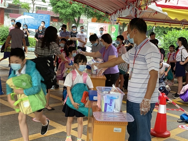針對(duì)近期學(xué)生分批上學(xué)、放學(xué)的一些細(xì)節(jié)問(wèn)題,學(xué)校也開(kāi)展了詳細(xì)的安排,家長(zhǎng)們對(duì)孩子的接送上小學(xué)時(shí)間已經(jīng)有所把握,在學(xué)校指定地點(diǎn)排好隊(duì),與校門(mén)口排好隊(duì)的學(xué)生眼神、揮手示意,認(rèn)領(lǐng)到自己孩子后即領(lǐng)即走,現(xiàn)場(chǎng)班主任和老師、家長(zhǎng)志愿者維持學(xué)校門(mén)口的交通、秩序,保證上學(xué)、放學(xué)的安全有序。
