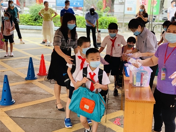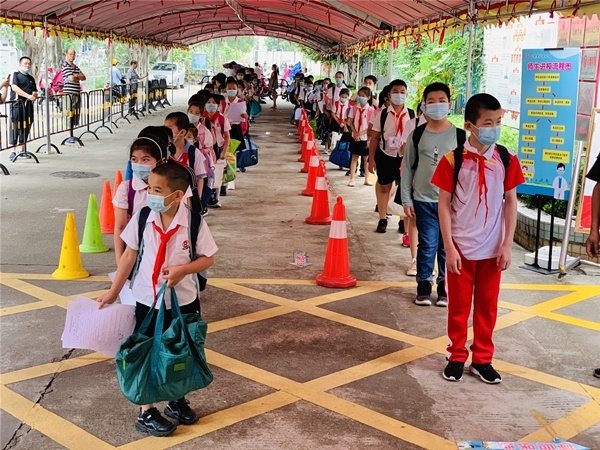 通往校園的河涌路上,孩子們按照學(xué)校制定的上學(xué)時(shí)間,實(shí)行錯(cuò)峰上學(xué)。越靠近北區(qū)小學(xué)的遮雨棚,越看清排隊(duì)的孩子們一臉認(rèn)真,聽(tīng)從現(xiàn)場(chǎng)值日老師的引導(dǎo),快速進(jìn)入校園!今天是一、二和三年級(jí)返校復(fù)課的第二天,經(jīng)過(guò)昨天的校園生活,低年級(jí)孩子們已經(jīng)了解上學(xué)的秩序,學(xué)校的行政班子依然不懈怠地早早在校門(mén)口做好迎接全校學(xué)生上學(xué)的準(zhǔn)備,即使是已經(jīng)熟悉的測(cè)量體溫工作,值日老師們都一絲不茍地對(duì)待,面對(duì)全校學(xué)生錯(cuò)峰進(jìn)入校園,壓力不可小視,這種認(rèn)真對(duì)待的態(tài)度是北小一貫的常態(tài)!