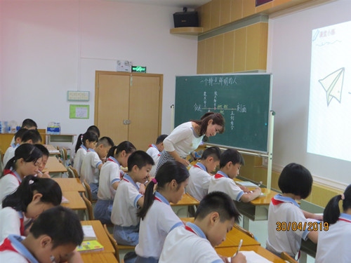 在學(xué)生們響亮整齊的讀書聲中,活動(dòng)首先由小欖鎮(zhèn)北區(qū)小學(xué)的張雪老師和北區(qū)小學(xué)五(2)班的孩子們?yōu)榇蠹規(guī)碚n堂觀摩——《一個(gè)特點(diǎn)鮮明的人》。張雪老師幽默風(fēng)趣的語言、精心的教學(xué)設(shè)計(jì)以及對(duì)本節(jié)課的說課環(huán)節(jié)給全場教師帶了不同以往的課堂體驗(yàn),讓老師們學(xué)習(xí)到了許多“錦囊妙計(jì)”。