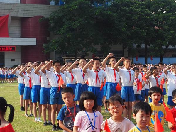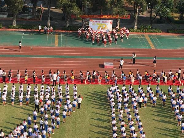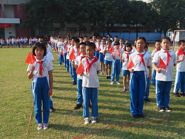 為了營造熱烈的氣氛,德星小學(xué)全校師生在國慶前一周,利用每天下午大課間的時間,連續(xù)數(shù)天在熱辣辣的小欖學(xué)院操場草坪上擺出“70”兩個頗具意義的人體大型方陣造型,以此來表達(dá)對祖國的崇敬和熱愛。
