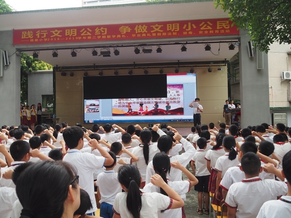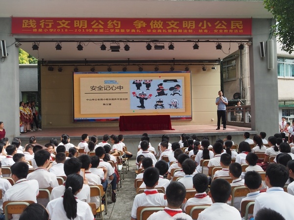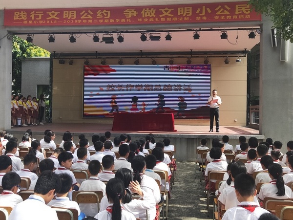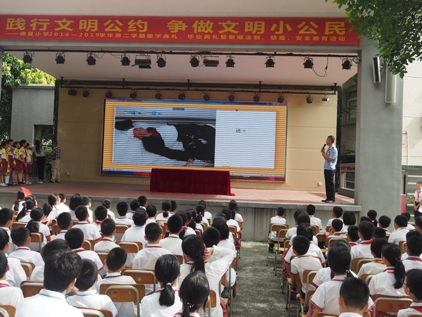 為大力培育和踐行社會(huì)主義核心價(jià)值觀,深化全國(guó)文明城市和文明校園創(chuàng)建,中山市教育和體育局在中小學(xué)生中組織開展《中山市民文明公約》宣傳教育實(shí)踐活動(dòng),通過(guò)“小手拉大手,文明齊步走”的方式,促使廣大市民對(duì)文明公約普遍認(rèn)知認(rèn)同,做到內(nèi)化于心、外化于行,進(jìn)一步提升社會(huì)文明程度。2019年7月5日德星小學(xué)開展了“踐行文明公約,爭(zhēng)做文明小公民”主題教育活動(dòng)暨散學(xué)典禮、畢業(yè)典禮、假期法制、禁毒安全教育活動(dòng)。
