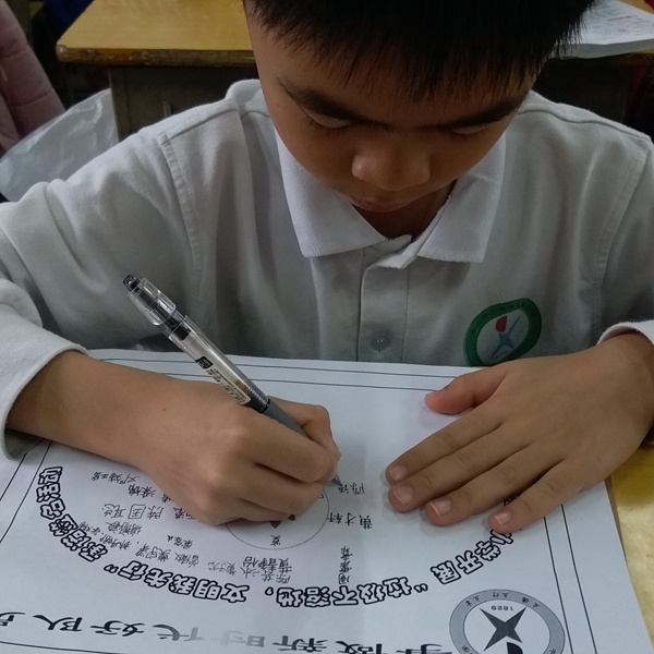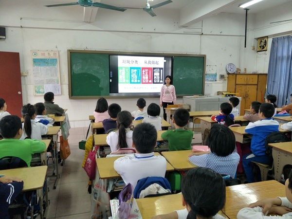 主題班會上,班主任老師首先出示有關(guān)人類亂扔垃圾的圖片和動畫視頻,學生看著這觸目驚心的畫面,不由自主地發(fā)出悲嘆。然后,班主任老師教育學生“世上沒有垃圾,只有放錯了位置的資源?!苯又寣W生學會如何進行垃圾分類并把垃圾變成寶。垃圾大致可分為可回收垃圾、廚余垃圾、有害垃圾、其他垃圾四類,分別是藍色、綠色、紅色、黃色來表示。學生們有很高的學習積極性,都能對垃圾進行正確的分類。最后,學生紛紛承諾并簽名,保證做到“垃圾不落地,文明我先行”,努力爭做一個新時代的好隊員。