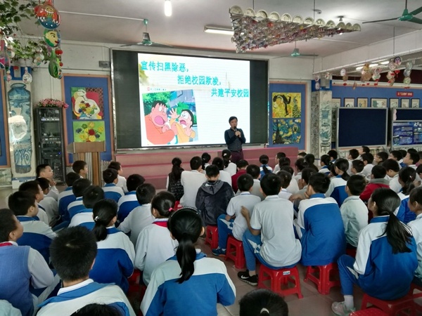 講座中,學校專門邀請了法制副校長凌勇警長,為五六年級師生作專題講座,凌警長結(jié)合違法犯罪案例,用通俗易懂的語言向?qū)W生闡述了什么是“黑惡勢力”以及黑惡勢力違法犯罪的種種表現(xiàn)、社會危害以及面對“黑惡勢力”如何運用法律進行自我保護等內(nèi)容。告誡全體同學務必謹慎交友,加強法律知識學習,提高自我控制能力和辨別是非能力。最后,劉主任希望同學們從身邊做起,從小事做起,做文明的德星學子,積極參與到"掃黑除惡"行動中來,拒絕校園欺凌,營造良好氛圍,構建平安和諧校園,為學生健康成長保駕護航。