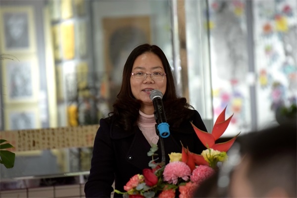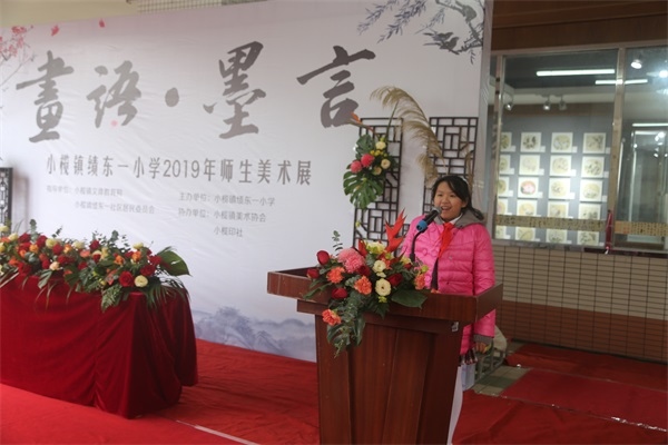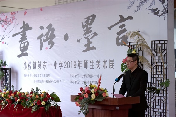 活動開始,績東一小學蔡春燕校長致歡迎辭,并表達衷心的感謝,希望績東一學子繼續(xù)傳承優(yōu)秀傳統(tǒng)文化,墨海弄潮,追夢丹青。學生代表張景月同學代表績東一學子表達對帶領他們探索藝術辛苦付出的美術教師們的感激。緊接著,績東一社區(qū)居委會主任黃慧賢女士、小欖鎮(zhèn)文體教育局局長盧穎禧先生等領導也先后進行致辭,對績東一小學美術教育藝術成就給予高度肯定與美好祝愿。綿綿心語,濃濃墨香,伴隨著飄溢的花香,開啟了別致的剪彩儀式。