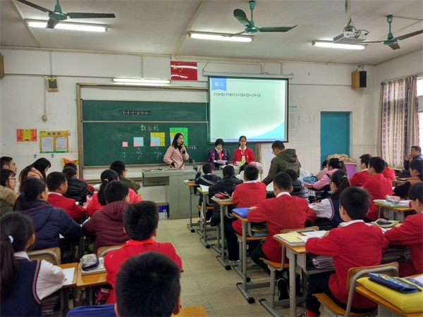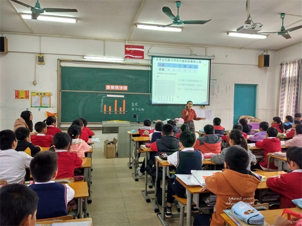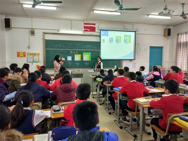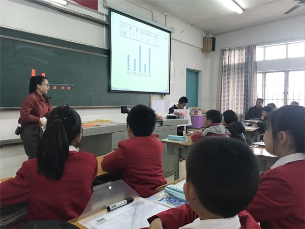 本次教研活動主要圍繞統(tǒng)計與概率和數(shù)學(xué)廣角進行。首先全體參加教研活動的老師聽取了績東一小學(xué)陳柳娟老師執(zhí)教的六年級數(shù)學(xué)《數(shù)與形》。課堂上陳老師引導(dǎo)學(xué)生以形助數(shù)、以數(shù)解形、數(shù)形互助,讓學(xué)生充分感受“形使數(shù)直觀,數(shù)使形精確”,領(lǐng)悟數(shù)形結(jié)合的思想方法。第二節(jié)課是由來自四沙小學(xué)的陳金旋老師執(zhí)教四年級數(shù)學(xué)《條形統(tǒng)計圖》。陳老師既充分利用教材又敢于跳出教材,以本校老師支教為主線設(shè)計教學(xué),巧妙地將中山的博愛精神滲透到課堂中,在孩子們的心中播下大愛的種子。