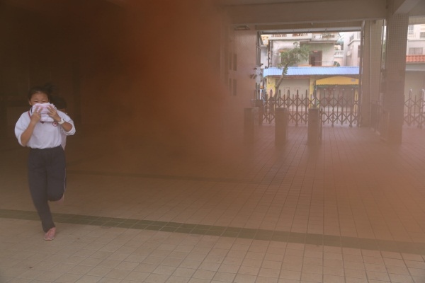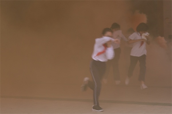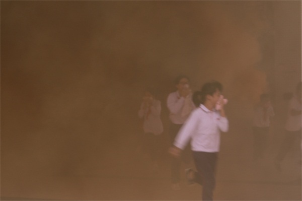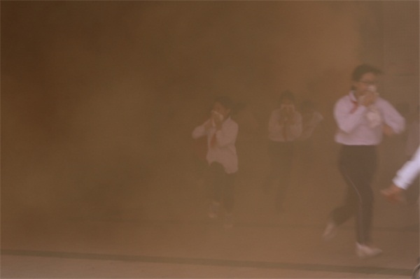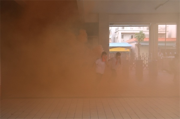 為保證活動(dòng)地順利進(jìn)行,學(xué)校提前告知孩子們當(dāng)天準(zhǔn)備好毛巾,但為了提高學(xué)生的應(yīng)急能力不告訴學(xué)生具體的演練時(shí)間。警報(bào)一鳴起,全體學(xué)生迅速用毛巾捂住口鼻,快速地按學(xué)校指定的疏散路線撤離教學(xué)樓,集中到運(yùn)動(dòng)場(chǎng)。為了讓師生真實(shí)體驗(yàn)此過(guò)程,本次還在各個(gè)逃生必經(jīng)之處點(diǎn)燃了煙霧彈,現(xiàn)場(chǎng)濃煙滾滾,效果逼真。隨后,吳主任點(diǎn)評(píng)了本次消防安全演練。吳主任向同學(xué)們講解了一些逃生知識(shí)要點(diǎn),特別是要用濕布捂住口鼻,有利防止被煙霧熏倒而導(dǎo)致喪失生命。