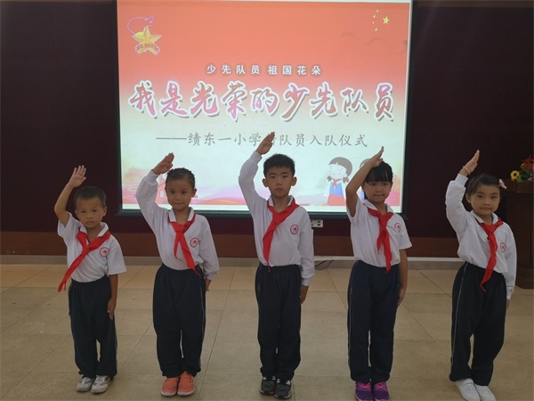 2018年10月15日下午,細(xì)雨如絲,校園新栽的白玉蘭葉尖上掛著晶瑩的雨珠。對(duì)于績東一小學(xué)低年級(jí)的部分孩子而言,這是一個(gè)難忘的日子,因?yàn)榻裉焖麄兇魃狭缩r艷的紅領(lǐng)巾,光榮地加入了中國少年先鋒隊(duì),成為一名真正的少先隊(duì)員。