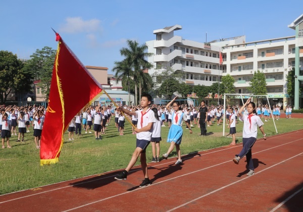 首先由蔡校長向全體隊(duì)員致“六一”祝福;接著為一年級第二批40名新隊(duì)員舉行簡單而又隆重的入隊(duì)授巾儀式,以最有意義的方式來慶祝六一兒童節(jié)。儀式上,高年級的大哥哥、大姐姐給新隊(duì)員戴上了鮮艷的紅領(lǐng)巾。新隊(duì)員神采奕奕,臉上洋溢著幸福與自豪,他們在隊(duì)旗下莊嚴(yán)宣誓。緊接著,學(xué)校表彰了2018年校園“十佳學(xué)生”和“優(yōu)秀學(xué)生”,他們都是經(jīng)過班級推薦、學(xué)校綜合考量和師生投票等過程最終產(chǎn)生的,是孩子們身邊的學(xué)習(xí)榜樣。