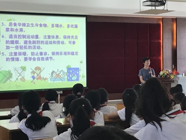 講座中,賴醫(yī)生著重介紹了青春期女生生理和心理上的發(fā)展變化,從科學(xué)的角度引導(dǎo)、教育學(xué)生正確面對(duì)青春期身體的變化。講座伊始,賴醫(yī)生以詼諧風(fēng)趣的語(yǔ)言,讓剛進(jìn)入會(huì)場(chǎng)還略帶緊張與羞澀的女孩子們放松下來(lái),進(jìn)入聽(tīng)課的狀態(tài)。接著賴醫(yī)生以圖文并茂的形式講述了女生青春期的相關(guān)知識(shí);如何正確處理男女生關(guān)系,避免早戀;學(xué)會(huì)自我保護(hù)。全體高年級(jí)女生從賴醫(yī)生的講座認(rèn)識(shí)到青春期是女生生理和心理發(fā)育的關(guān)鍵時(shí)期,也是世界觀、人生觀逐步形成的時(shí)期,要以積極健康的心態(tài)迎接青春期的到來(lái),做到自強(qiáng)、自愛(ài)、自尊、自律,這樣,才能樹(shù)立起正確的價(jià)值觀、人生觀,以健康的心態(tài)迎接生活、迎接未來(lái)。